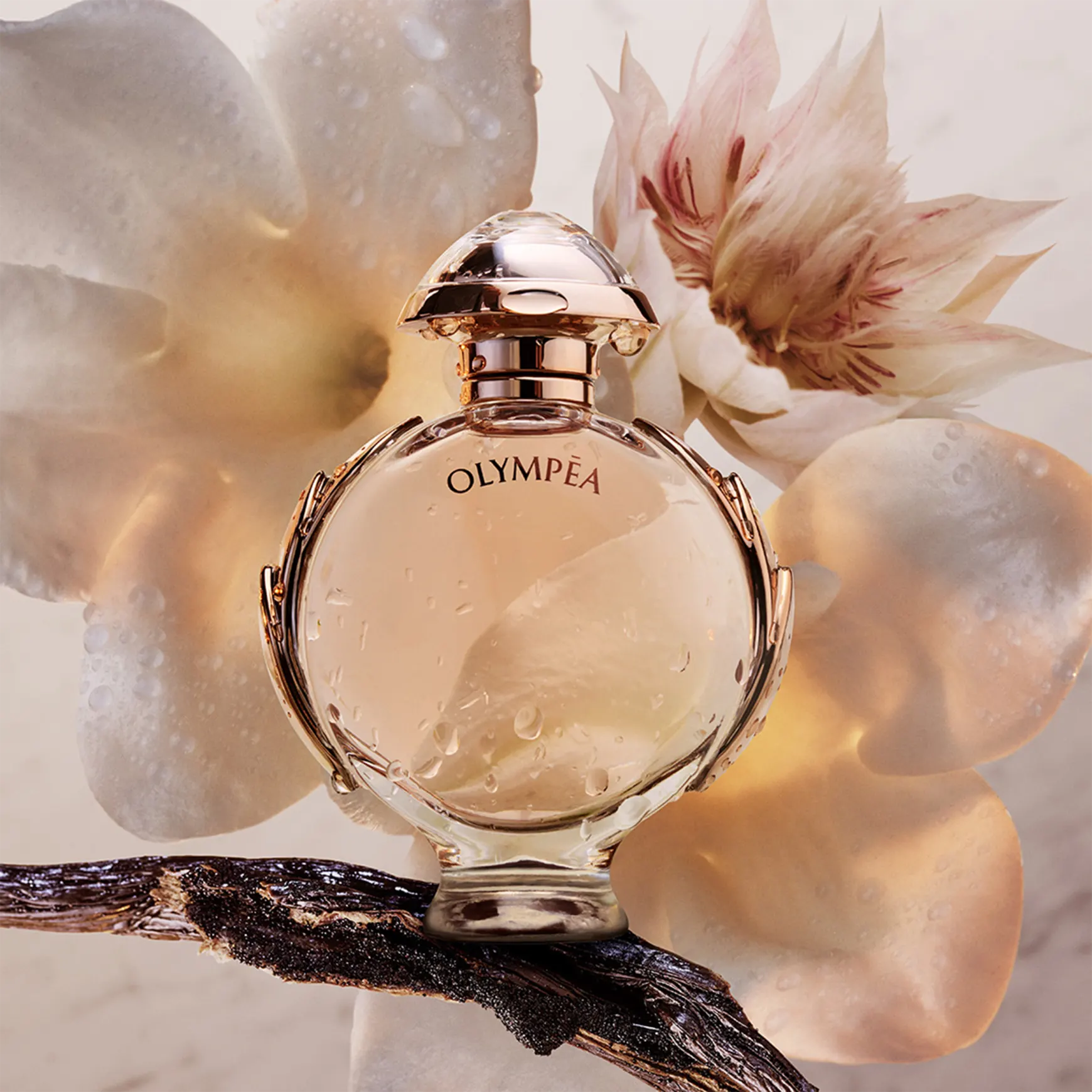 Olympéa de Paco Rabanne é um perfume Âmbar Floral Feminino. Olympéa foi lançada em 2015. Olympéa foi criado por Loc Dong, Anne Flipo e Dominique Ropion. As notas de topo são: Jasmim Aquático, Mandarina Verde e Flor de Gengibre. As notas de coração são: Baunilha e Sal. As notas de fundo são: Âmbar Cinzento, Madeira de Cashmere e Sândalo