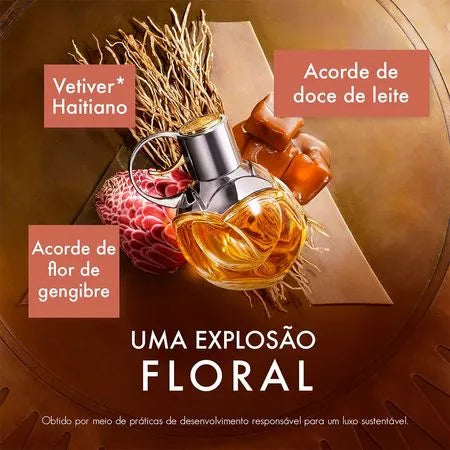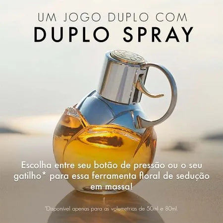 • À alvorada... bomba olfativa A denotação de uma granada fresca e acidulada e de uma flor de gengibre resplandecente e sensual, fruto de um co-destilado exclusivo de extrato de flor de laranjeira e de essência de gengibre. Uma combinação verdadeiramente explosiva!